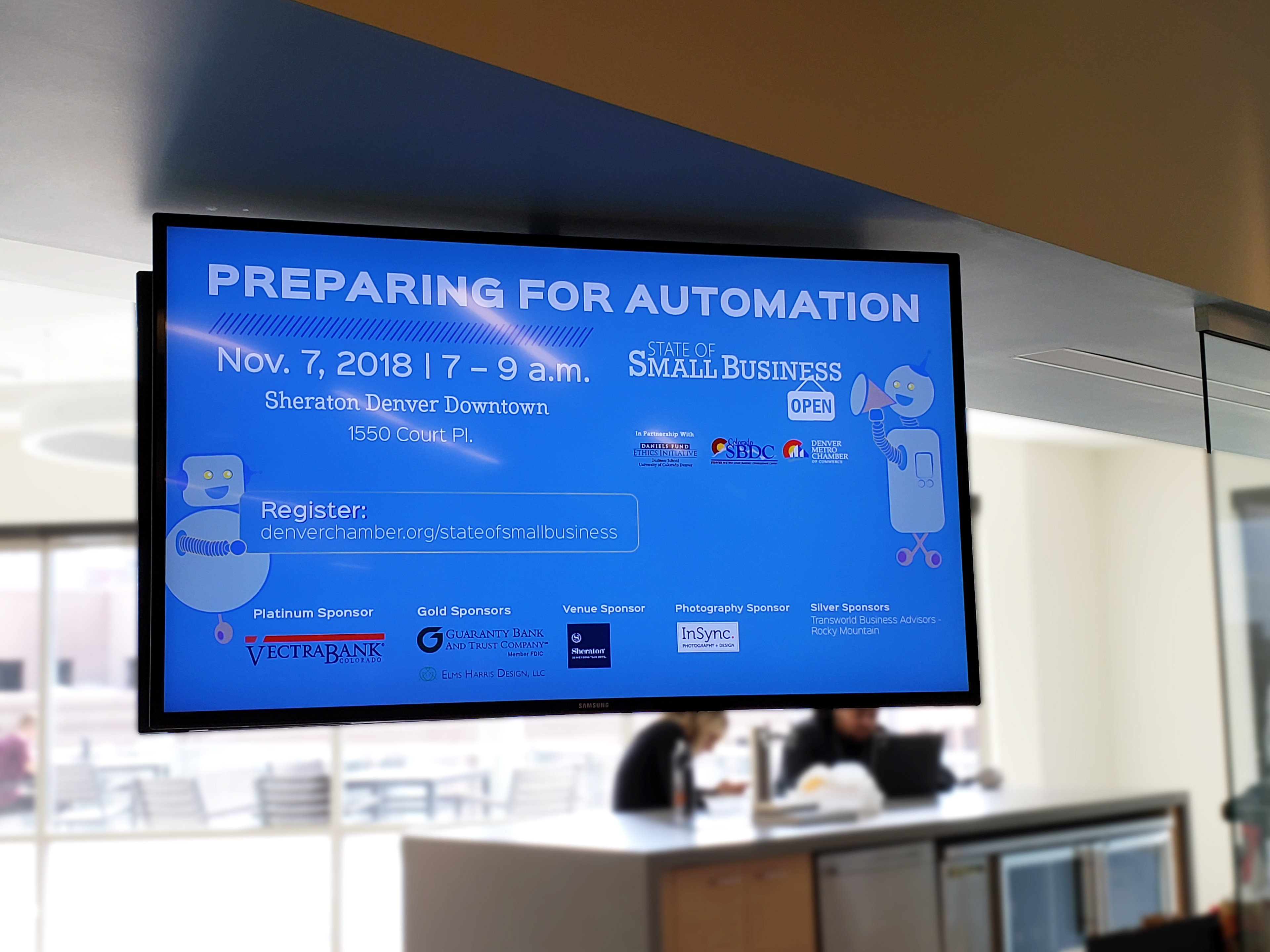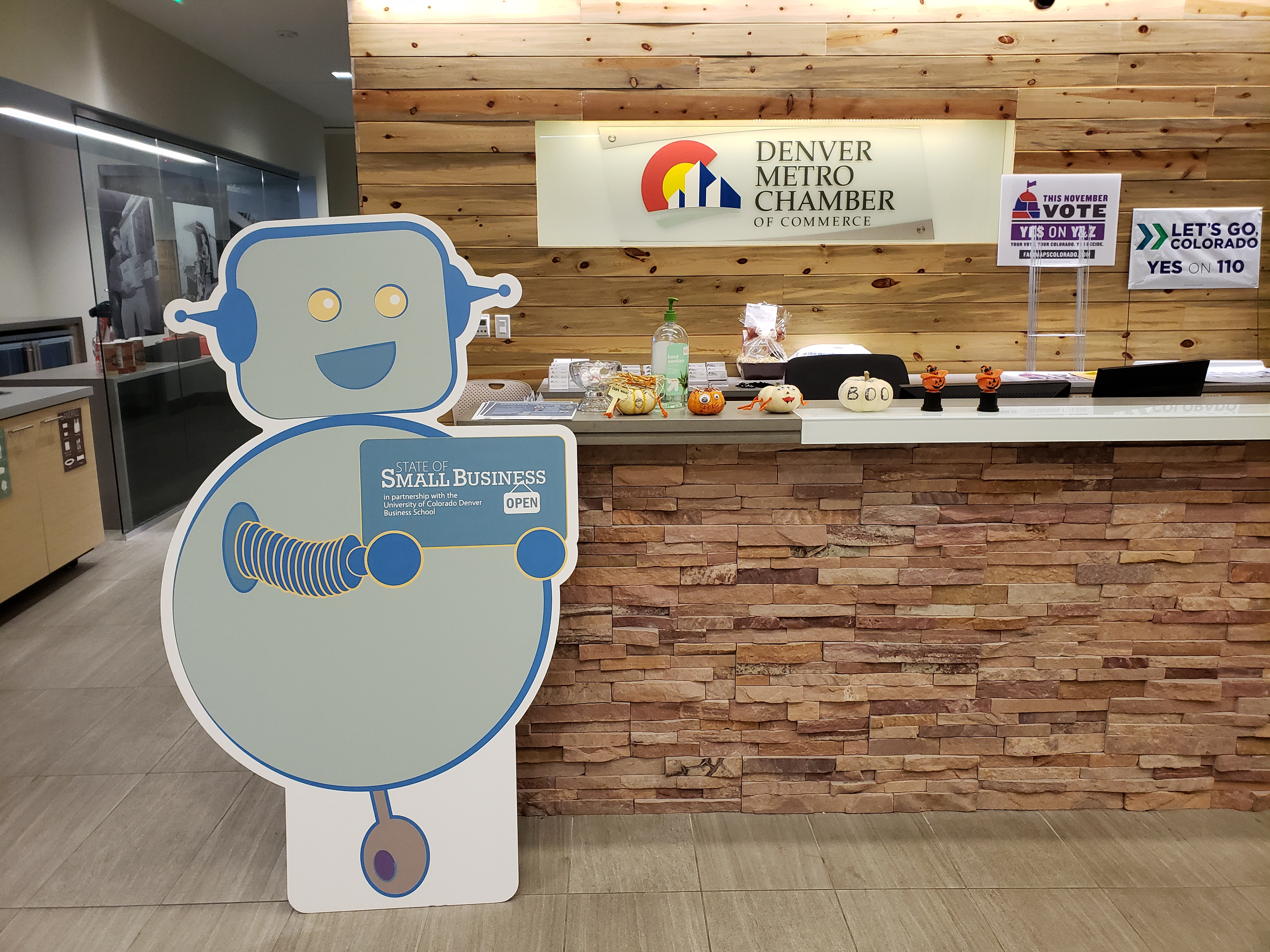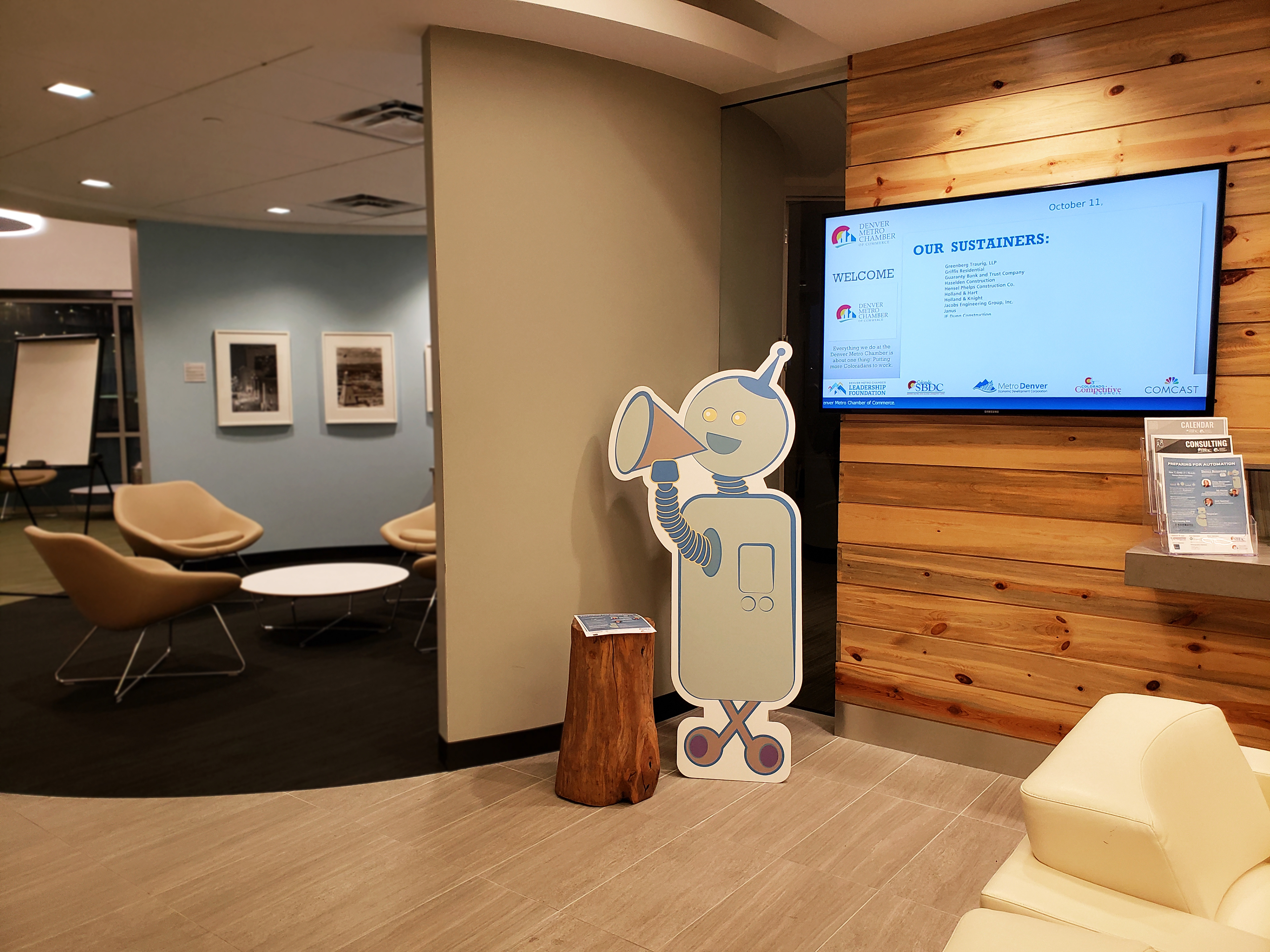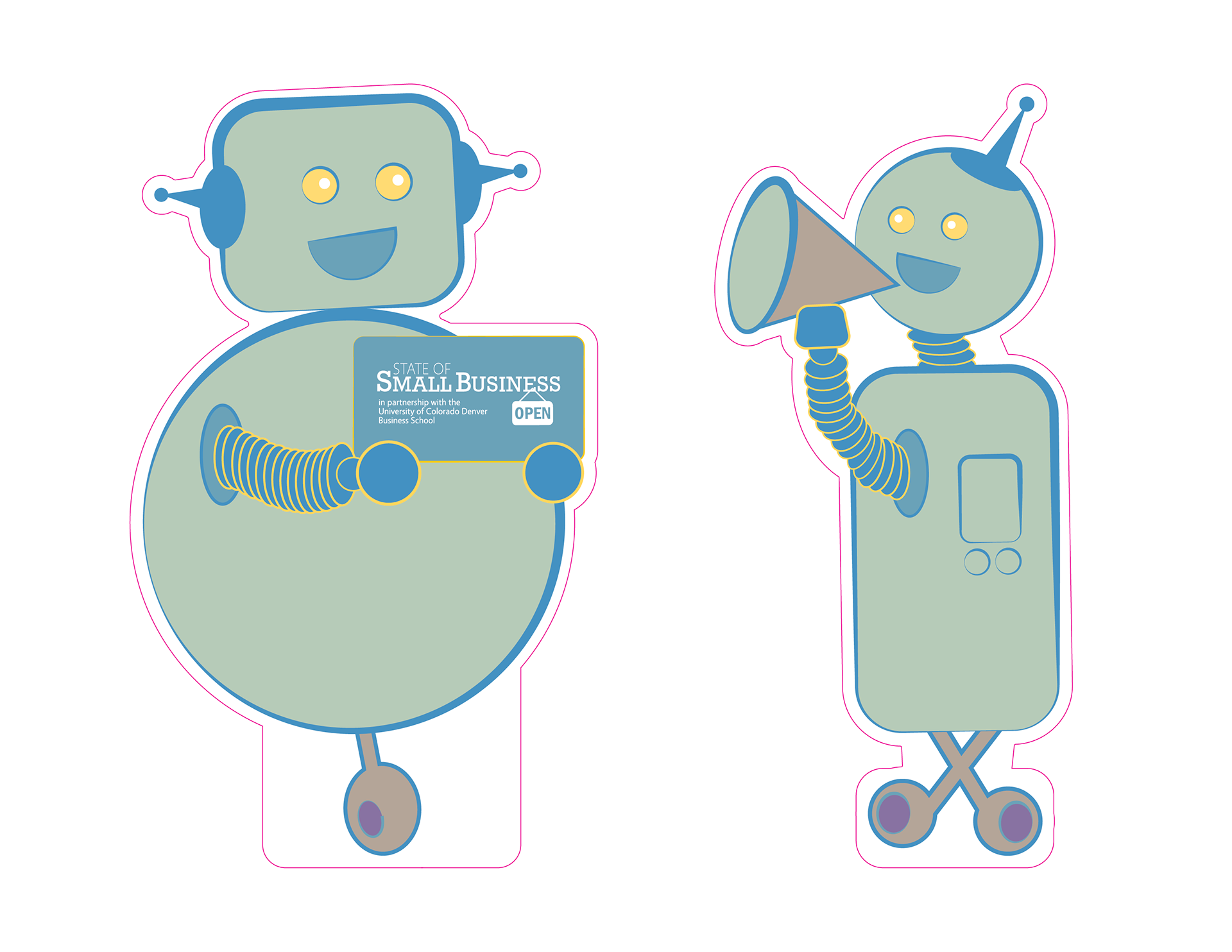 Event design & 5ft standups This was one of those projects where you throw an idea out there thinking there's no way they'll go for it, but they did. And the best part, aside from having the opportunity to design for the DMCC, was getting to make these robot illustrations into 5ft cutouts!
